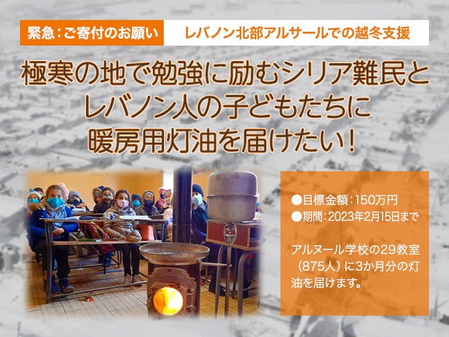レバノン北部アルサールでの越冬支援「極寒の地で勉強に励むシリア難民とレバノン人の子どもたちに、暖房用灯油を届けたい!」