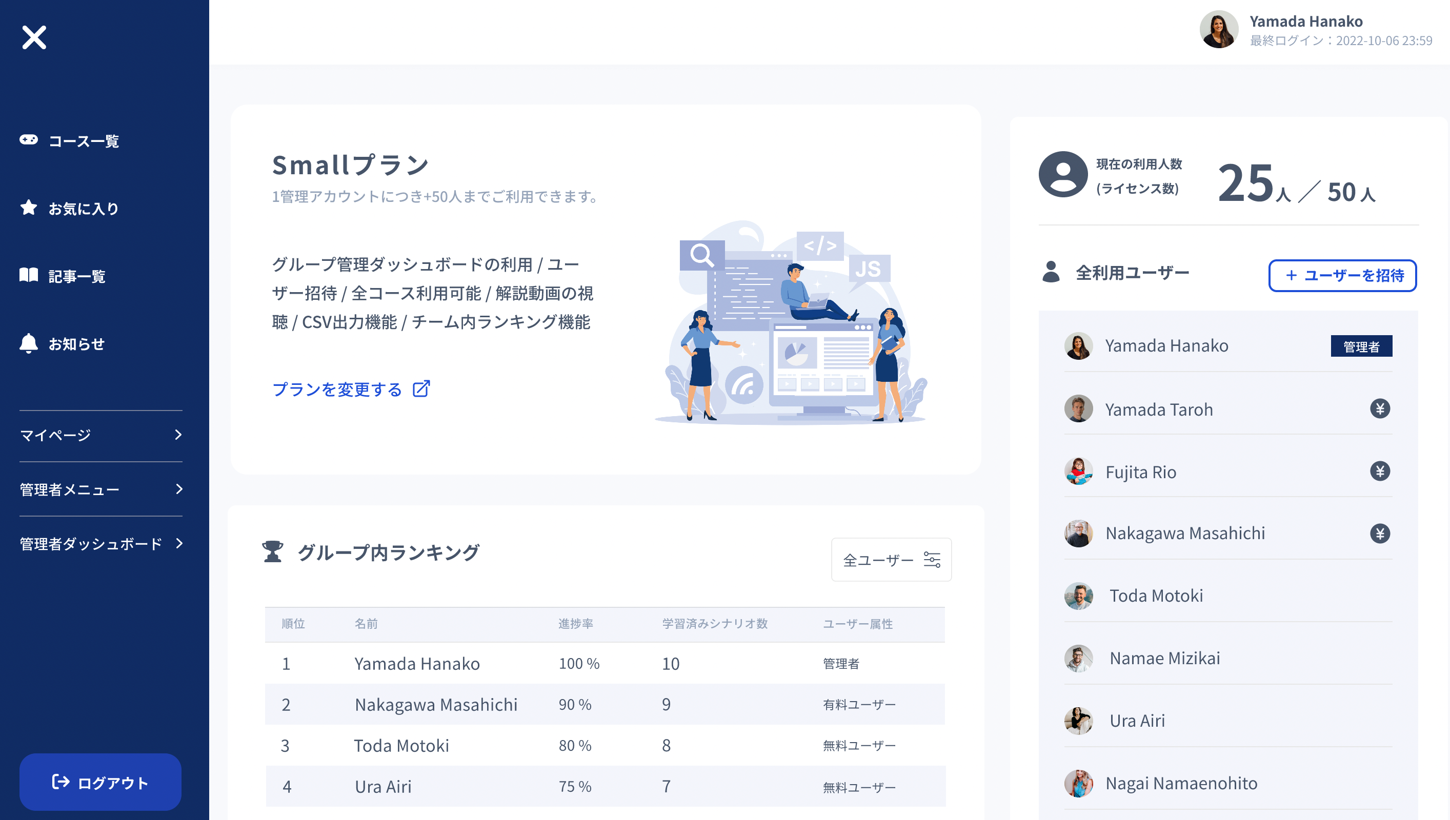 ・管理者ダッシュボード機能(ランキング、進捗率)