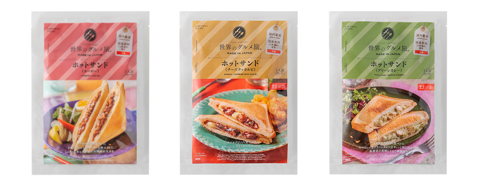 カラミノフーズは創業30年、「パスポートのいらない世界のグルメ旅®」を食卓にお届けして参りました。昨今の冷凍食品の伸長、そして主食(ご飯・パン・麺)の需要の高まりを受けて、世界の料理を具材にした『冷凍ホットサンド』を開発しました。“ありそうでなかった”新しい冷凍パンの誕生です。