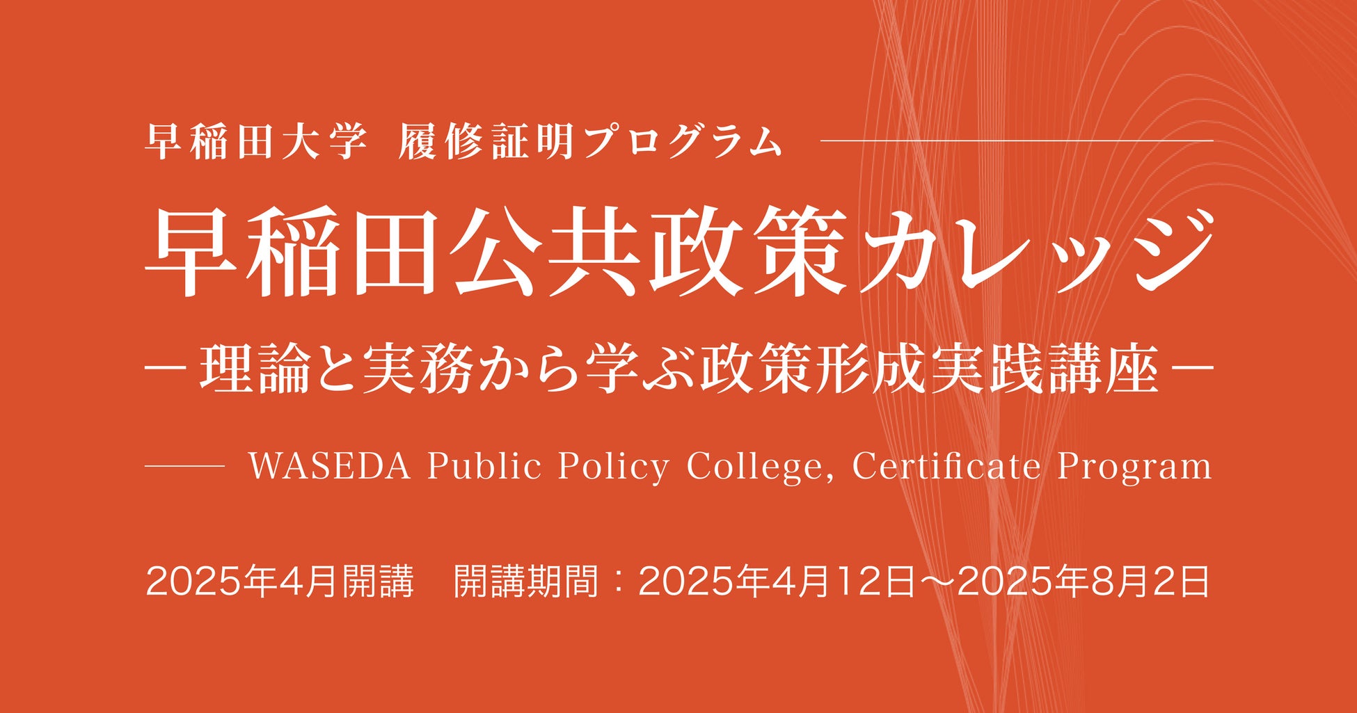 早稲田大学WASEDA NEO 履修証明プログラム『早稲田公共政策カレッジ』―「理論と実践の架橋」を実現する公共政策の学びと交流の場【2025年4月12日開講】