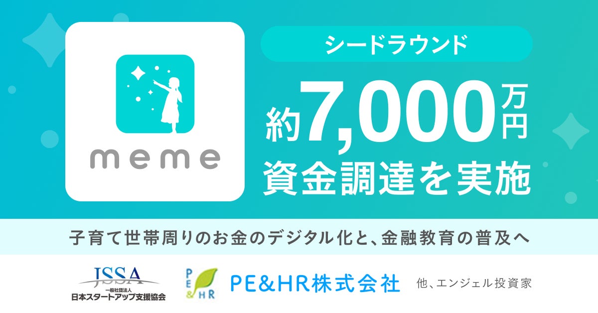 株式会社MEME(本社:東京都中央区、代表取締役・齋藤舞、以下MEME)は、PE&HR株式会社、日本スタートアップ支援協会および個人投資家を引受先とした第三者割当増資により、総額約7,000万円の資金調達を実施いたしました。