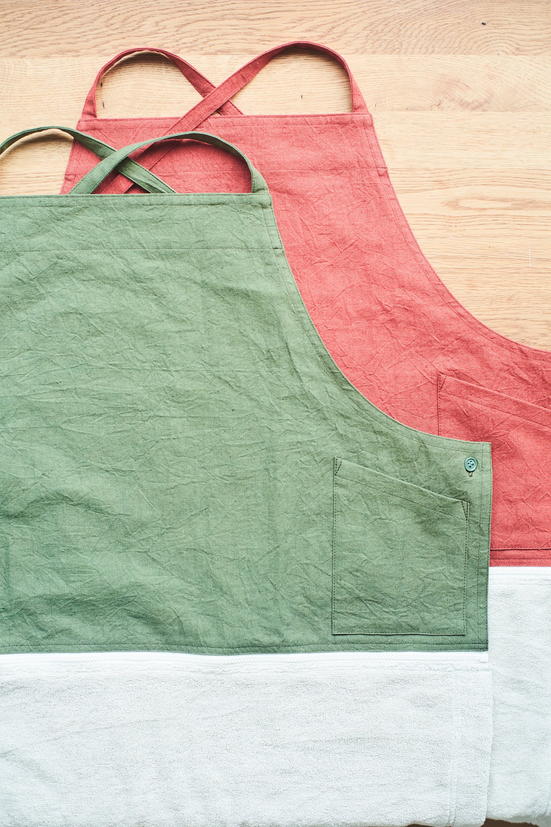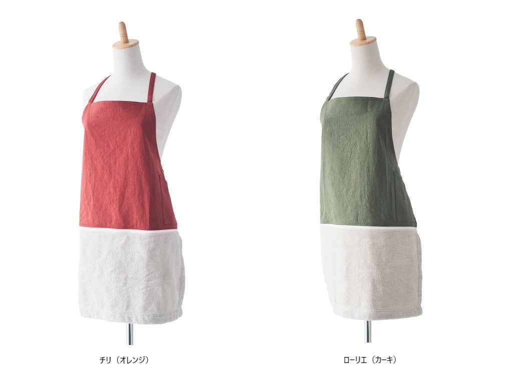 タオル部分には、その品質の高さで国外からも注目を集める今治産のタオルを使用。エプロン部分もすべて国内で縫製をしており、日本の丁寧なものづくりを感じていただけます。