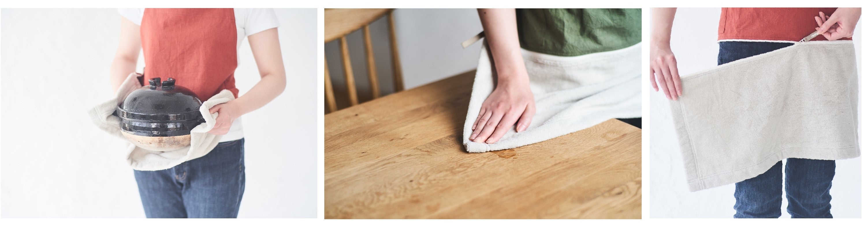 *拭いて、外せる。家事を楽にするエプロン