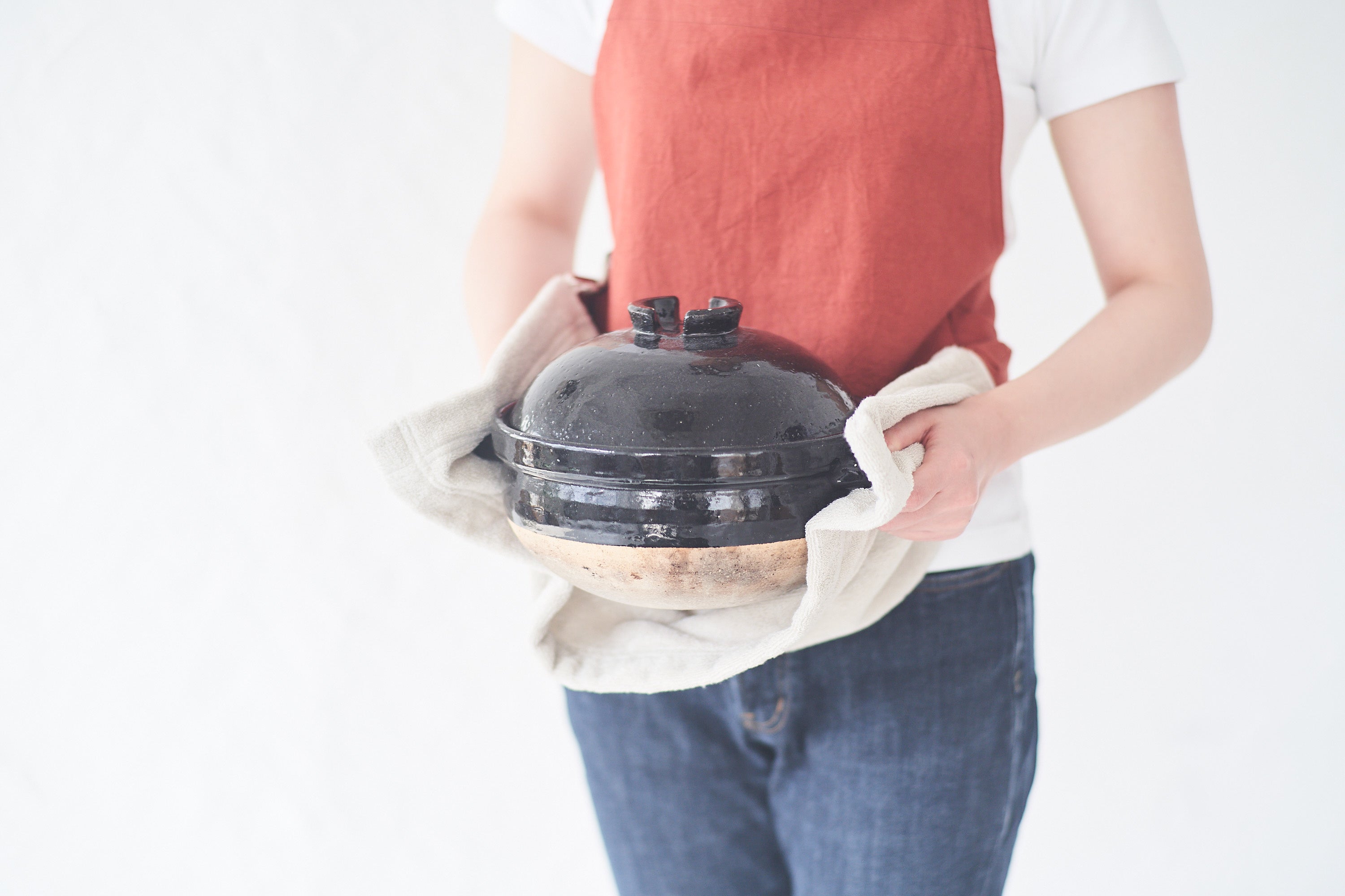 「いちばんこだわったのは、料理の隠し味みたいに、着る人をさりげなく彩る色。キッチンに立つ人を疲れさせたくないから、着心地の良さもゆずれない。すっと背筋が伸びるような、きれいなシルエットも追求しました。いろんな毎日に寄り添ってほしい、という思いでつくったエプロンです」