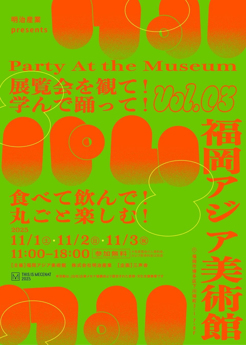 11/1(土)〜3(月祝)福岡アジア美術館で2つの展覧会を観て/学んで/食べて/飲んで/踊って/丸ごと楽しむパーティイベント『パム|Party At the Museum vol.03』開催決定!