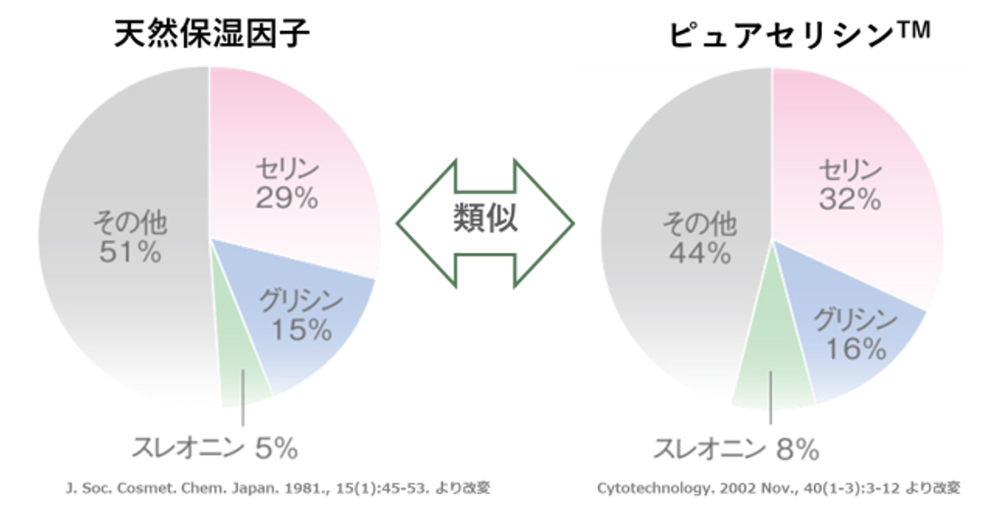 肌のうるおい保持に重要な天然保湿因子とそっくりのアミノ酸組成で、うるおいを持続(保湿)させて、肌に透明感とハリを与えます。