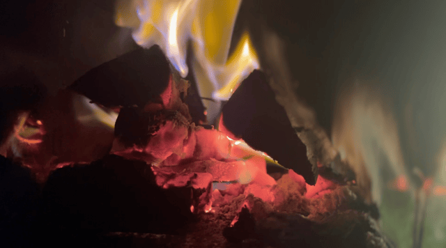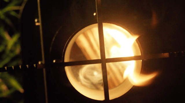 2次燃焼システムは底にある穴から空気を取り込み燃焼(1次燃焼)し、空気が上層に上がります。その際に側面から入り込む空気とガスが一緒になり、再度燃焼(2次燃焼)される仕組みにより、効率よく燃焼します。
