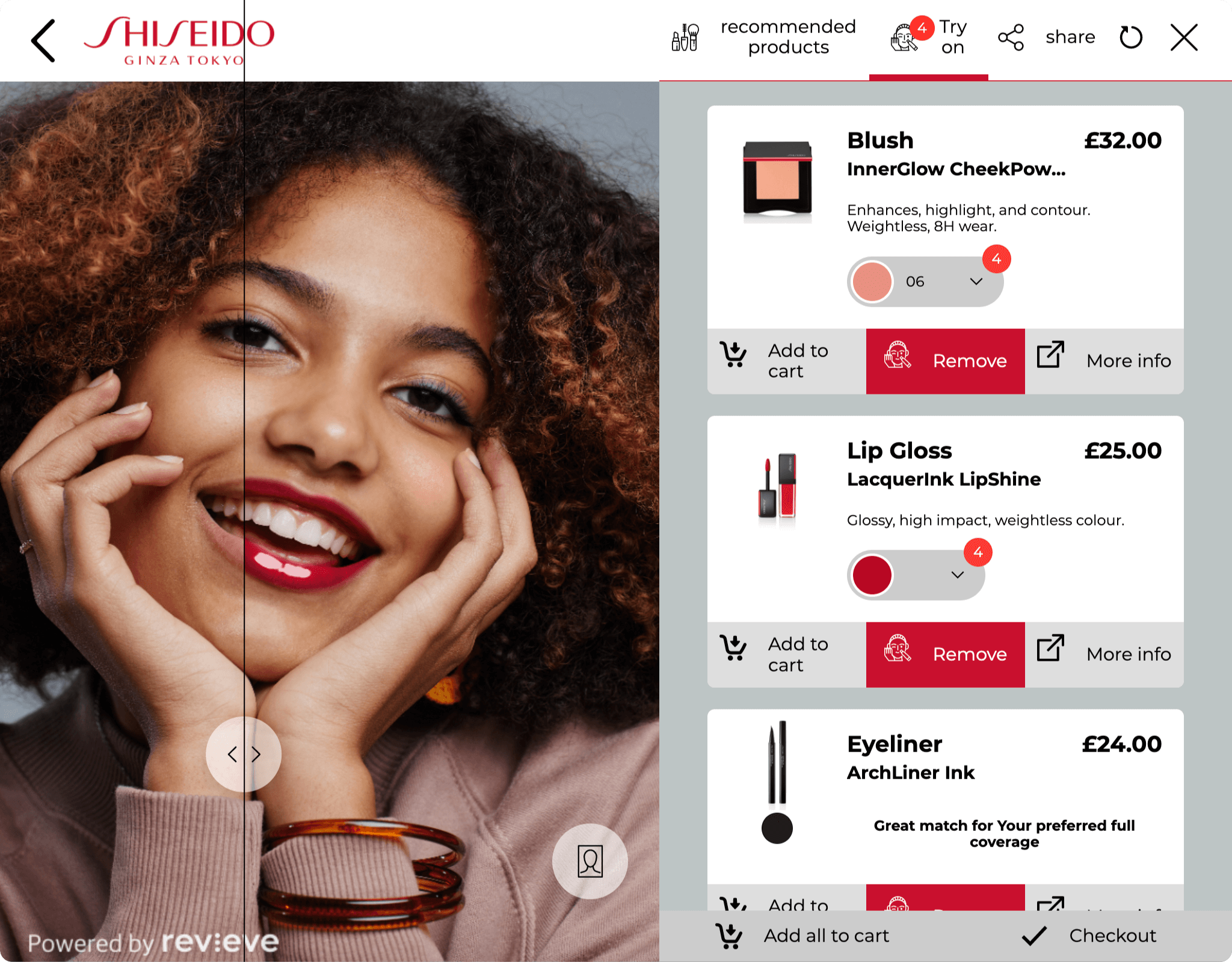 Revieveが提供するAI画像解析、レコメンデーション、バーチャルトライオン、専任の技術サポートを活用することで世界初のデジタルメイクアップ体験を実現します。