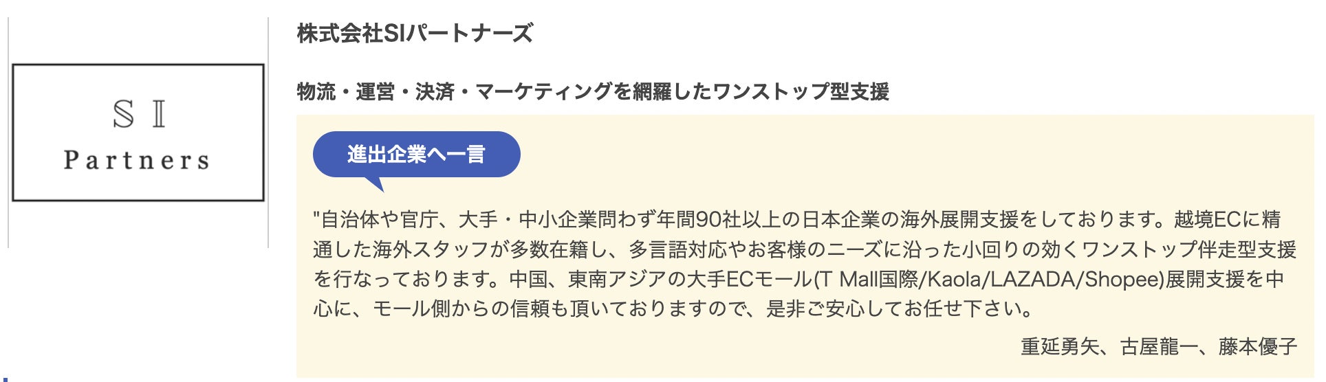 ・中国及び東南アジアの越境E C展開において、年間100社以上の日本企業の展開支援