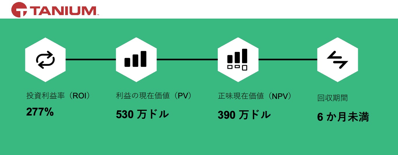 Tanium Coreは、導入組織のIT環境で98%以上のエンドポイントを特定、3年間で277%のROIを実現