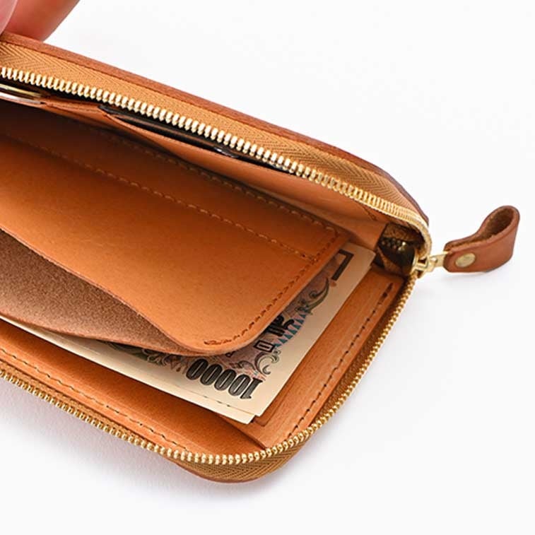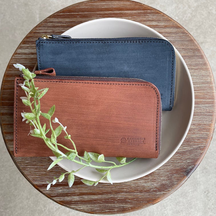 共同開発!サスティナブルなレザー!『ファスナーでL字型にひらくコンパクトな長財布』