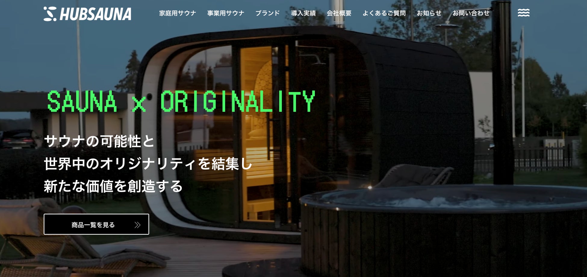 本リニューアルは、急成長するアウトドア・ウェルネス市場の中で、「サウナを通じた豊かなライフスタイルの提案」をより直感的かつ具体的にお届けすることを目的としています。特に、商品選定から導入までの導線改善、導入事例の可視化、そしてHUB SAUNAが持つベンチャー企業ならではのエネルギーと信頼性をデザイン面からも体現する構成となっています。