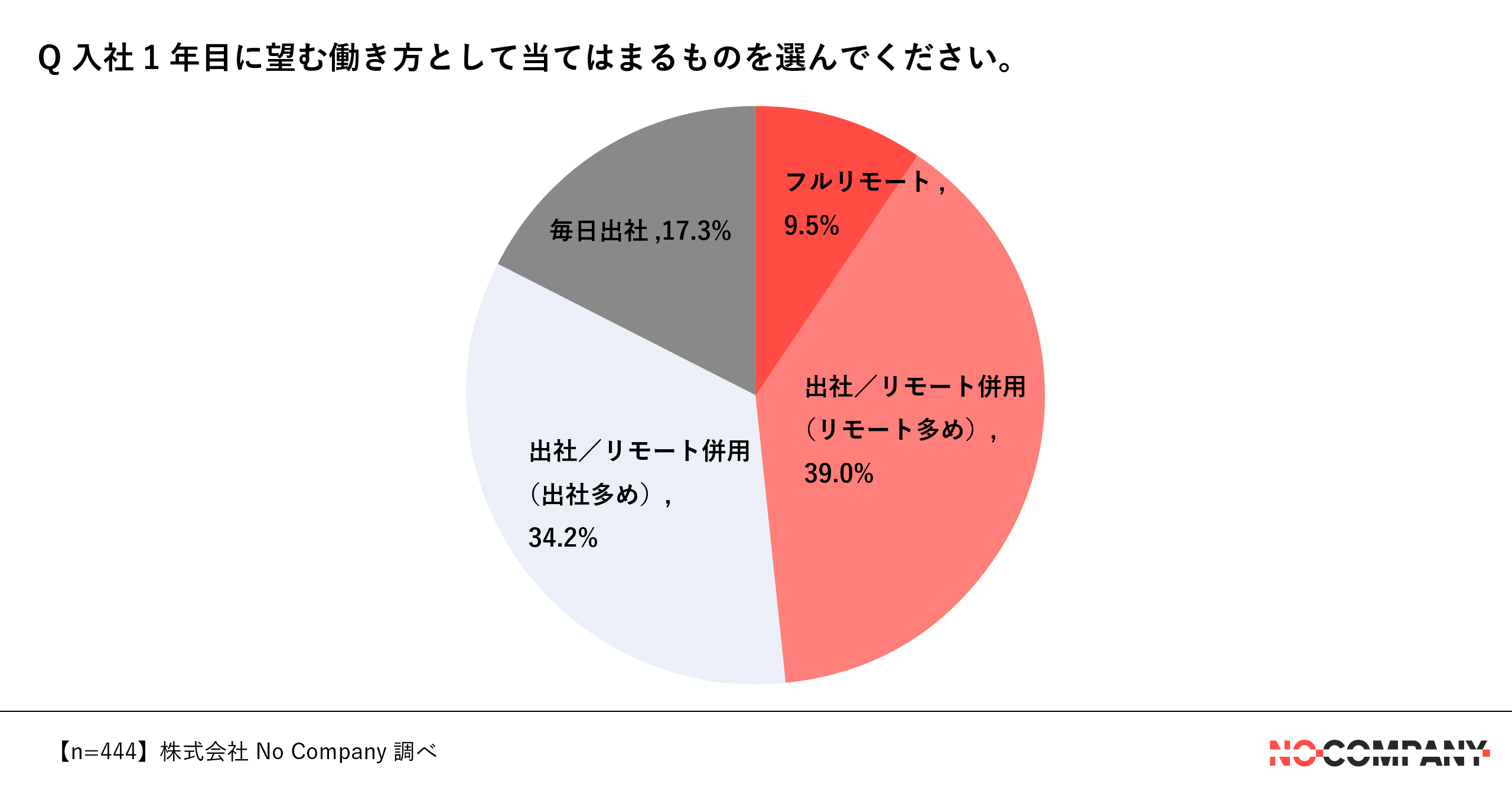 No Company、「Z世代就活生の理想の働き方実態調査」を発表。73.2%の就活生が入社1年目は出社とリモートワークのハイブリッドを希望