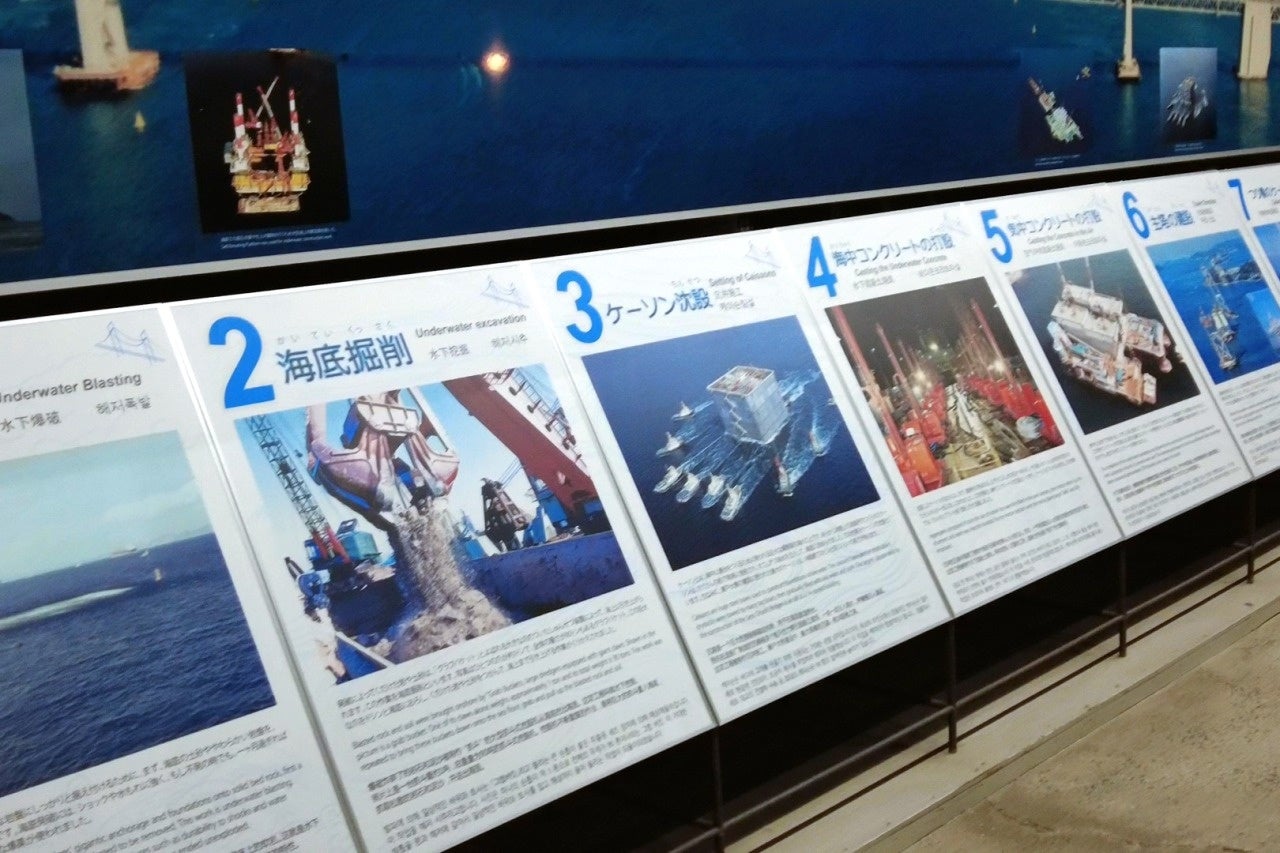 瀬戸大橋のケーブルは一番大きいもので、直径1m・長さ1780m・重さはなんと約2万トンと、かなり巨大なスケールです。このツアーでは、そんな巨大ケーブルを支える瀬戸大橋の土台(アンカレイジ)に入り、内部を見学できるツアーです。また内部には、瀬戸大橋の設計~竣工までの苦労や努力を称える展示室も設置しています(当日販売のみ)。