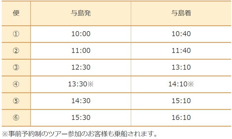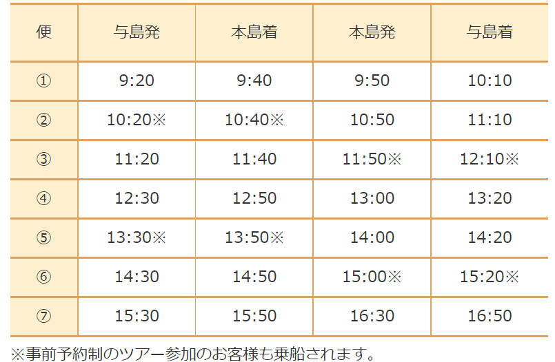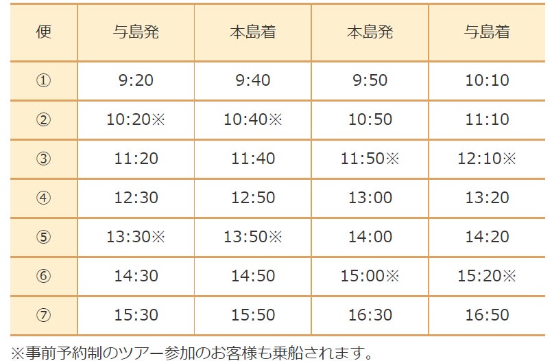 各日、与島⇔本島を7往復します。