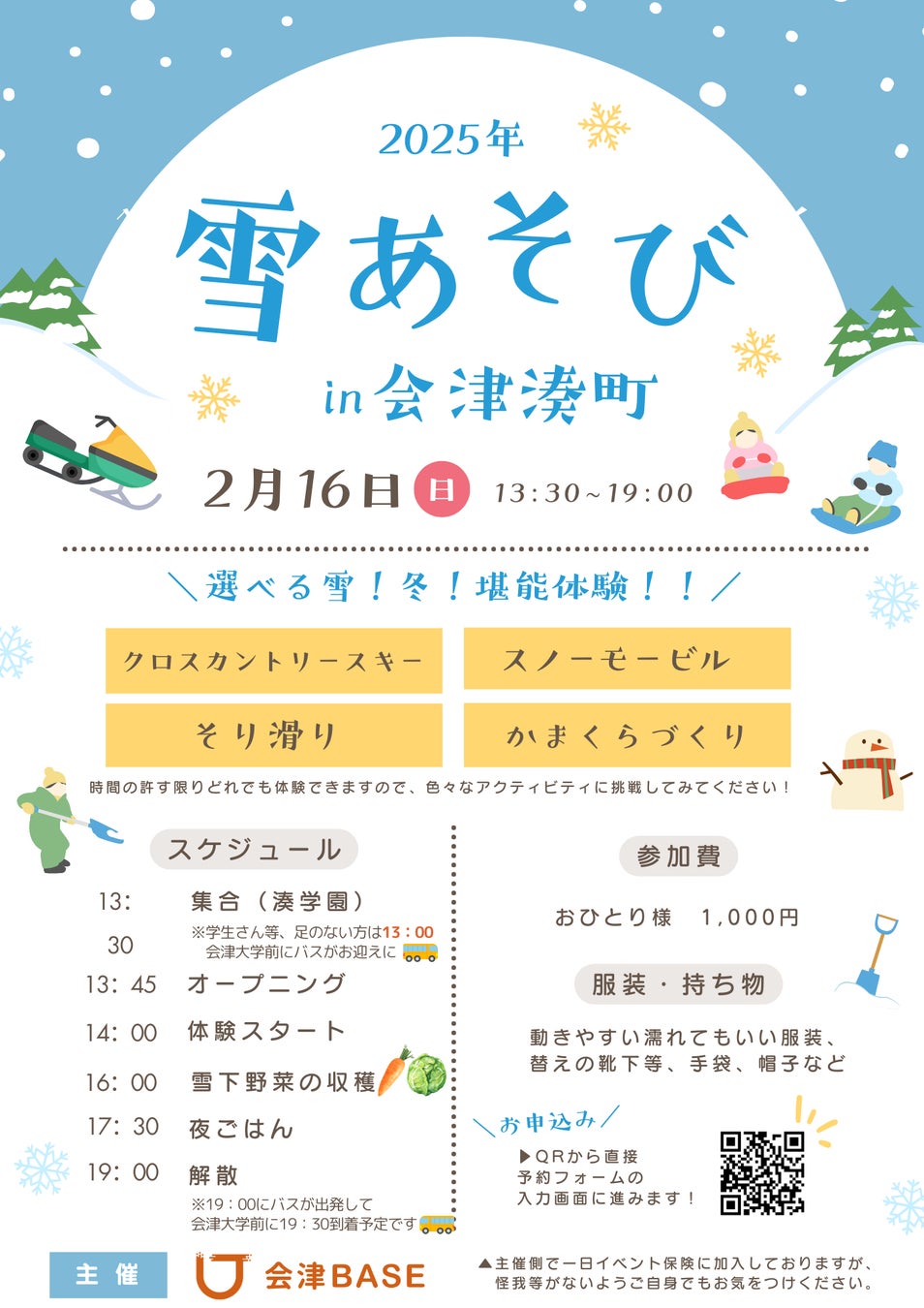 また、2025年2月16日(日)に地元企業と学生が気軽に交流できる「雪あそびイベント」を開催します。会津ならではの「雪」を楽しむ地域体験のイベントになっており、大人も学生も本気の雪遊びで、記念すべき1回目をスタートします。