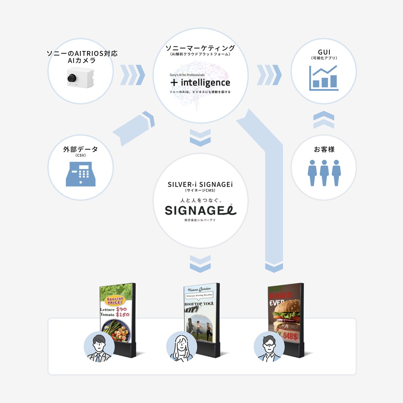 株式会社シルバーアイ(本社:神奈川県横浜市)はデジタルサイネージ配信CMS SIGNAGEiとソニーマーケティング株式会社(本社:東京都港区)のクラウドプラットフォーム AI解析ソリューション with AITRIOS を連携したサイネージCMS『SIGNAGEi × AITRIOS』の提供を開始いたしました。