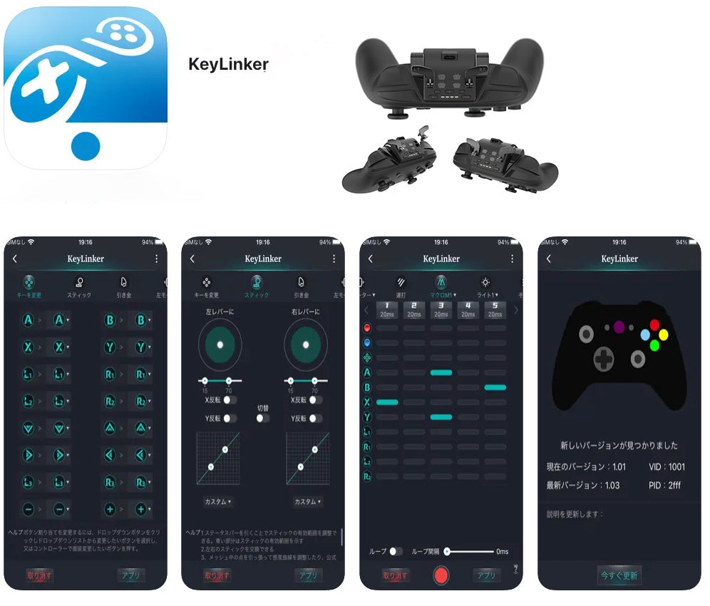 キーマッピング(ボタン割当)機能: 専用アプリ(keyLinker)と連携し、ゲームやプレイスタイルに合わせて、ボタンの機能を自由に再配置できるキーマッピング。直感的な操作性とカスタマイズ性を提供します。