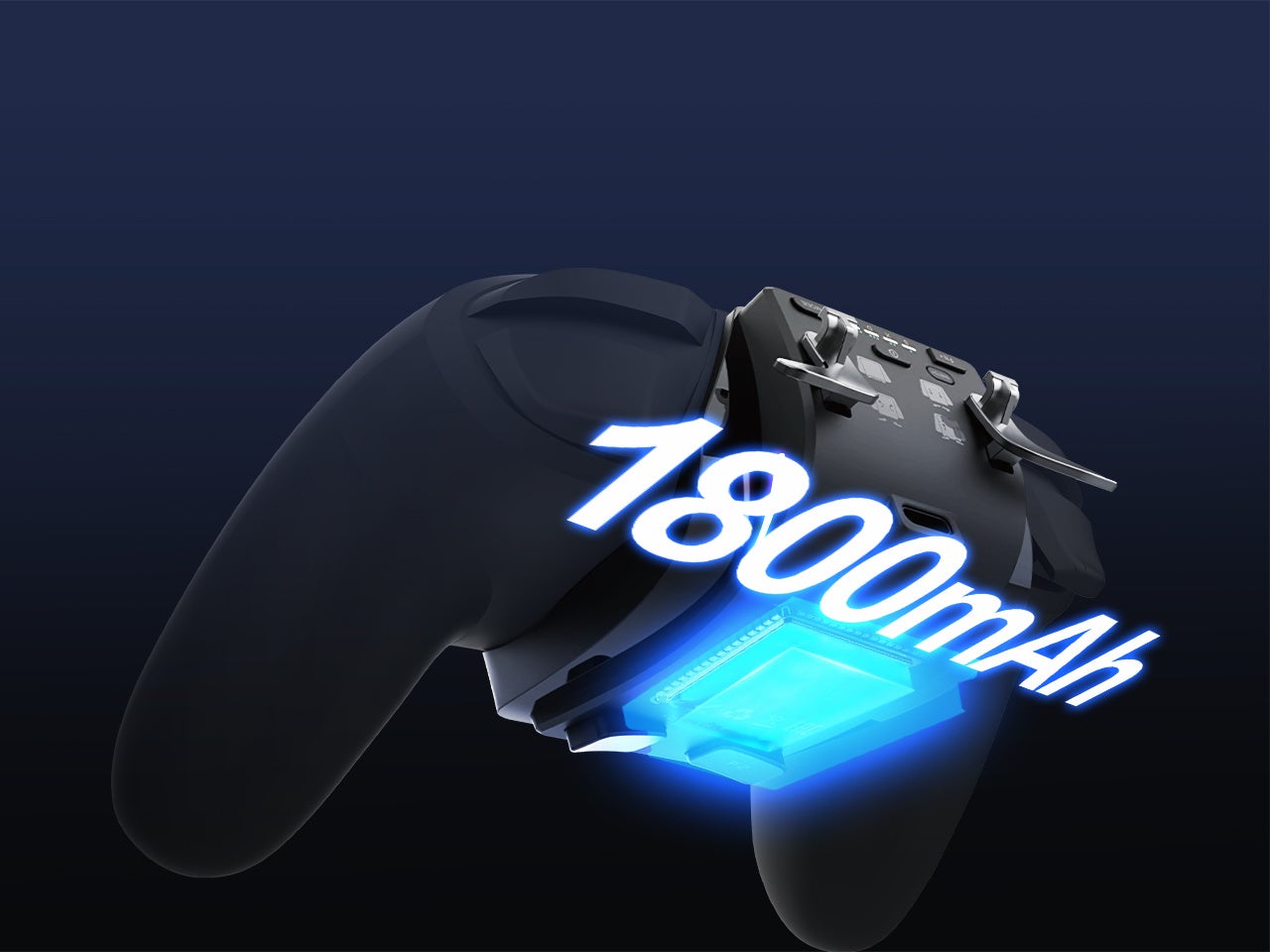 1800mAh 拡張バッテリー: 長時間のゲームセッションに対応する大容量バッテリー。プレイ時間の延長に加え、コントローラーの充電不足を心配することなくゲームに集中できます。