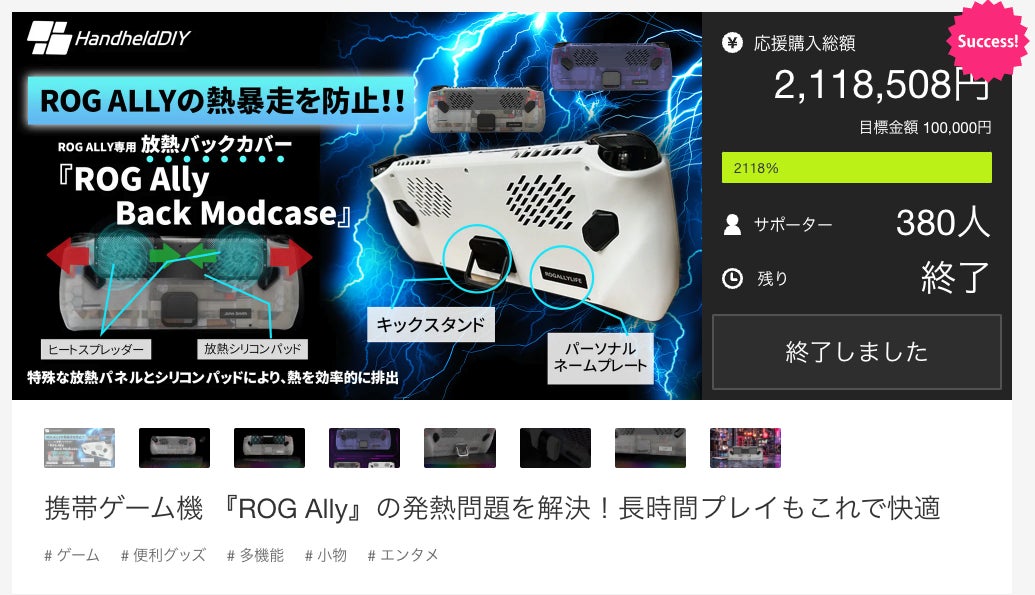 Makuakeでの販売は前回、目標の2118%を達成した『ROG Ally Back Modcase』に続く第2弾となります。https://www.makuake.com/project/rogally_case