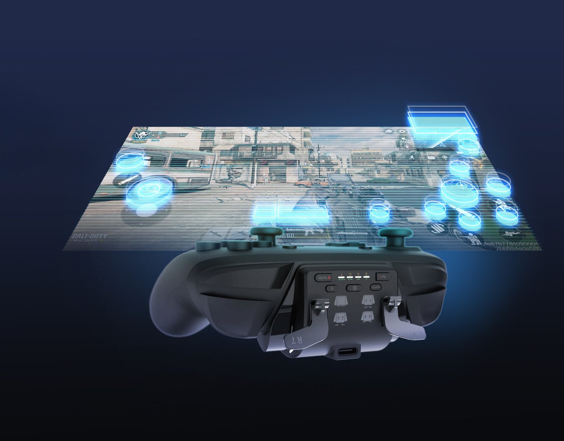 背面ボタンの追加: 指をコントローラーから離すことなく追加アクションを行える背面ボタン。高速反応が求められるアクションゲームやFPSゲームでの利便性が向上します。
