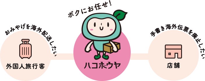 ハコボウヤは、外国人旅行客が来日した際、欲しいと思ったお土産を気軽に配送できるシステムです。