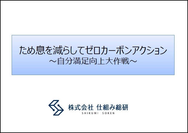 社会や組織にとって必要な「仕組み」づくりの支援をする会社である《株式会社仕組み総研》(本社:東京都中央区、代表取締役:人見隆之)は、個人がつくため息を減らして、吐き出す二酸化炭素を減らし、ゼロカーボンアクションに貢献するために、その具体的な実践を図るための「自分マニュアル」の販売を開始したことを発表いたします。