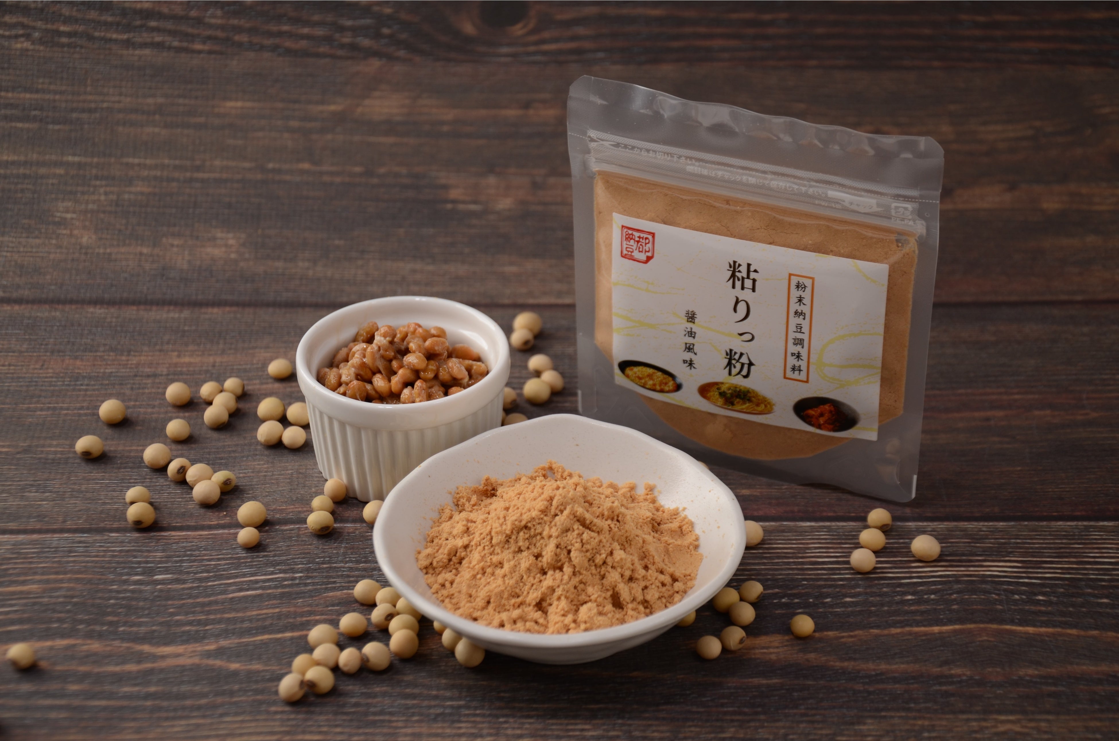 そのアイデアの中から「使ってみたい!」と思える納豆の新しい形を考え、製造に取りかかったのが「粉末納豆調味料」使う時にサラサラの粉末状、食べるときには「粘り」「味」ともに納豆感が復活する、簡単・便利な「粘りっ粉」(ねばりっこ)です。