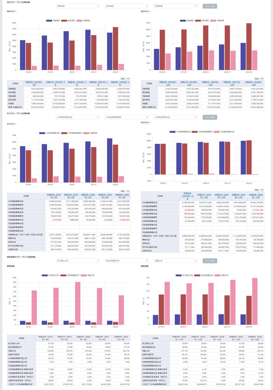 財務数値および経営指標のグラフ表示・比較分析機能を追加しました。医療法人間の比較分析や、二次医療圏平均との比較分析を容易に行うことができ、調査分析をより深く、より早く実施可能になります。今後も「MediCo Search(メディコサーチ」の機能拡充に努めてまいります。