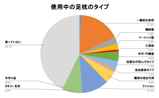 - 使用している足枕のタイプで一番多いのは一般的な形状の物17.3%