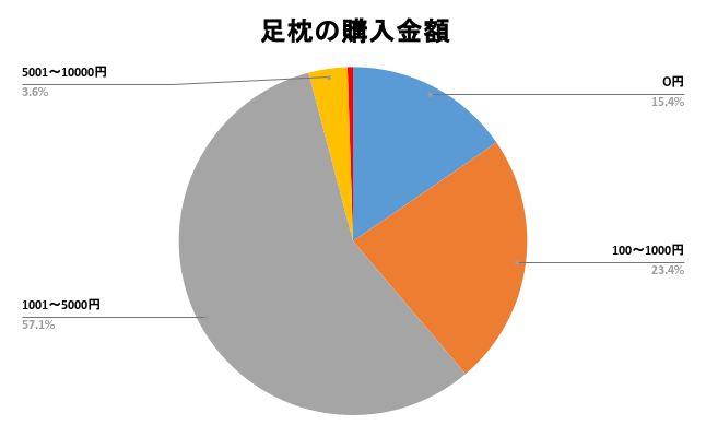 - 足枕の購入金額で多いのは1001~5000円57.1%