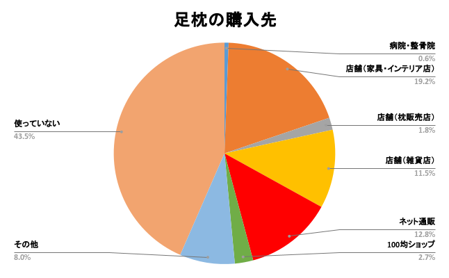 - 足枕の購入先は店舗(家具・インテリア店)19.2%