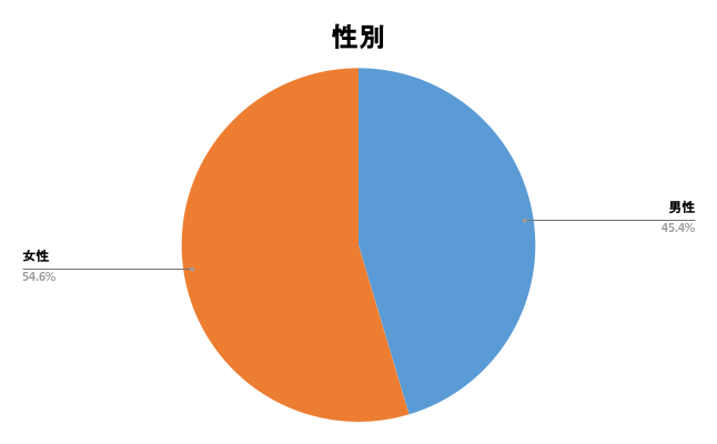 アンケートにお答え頂いた方の性別は以下のようになりました。