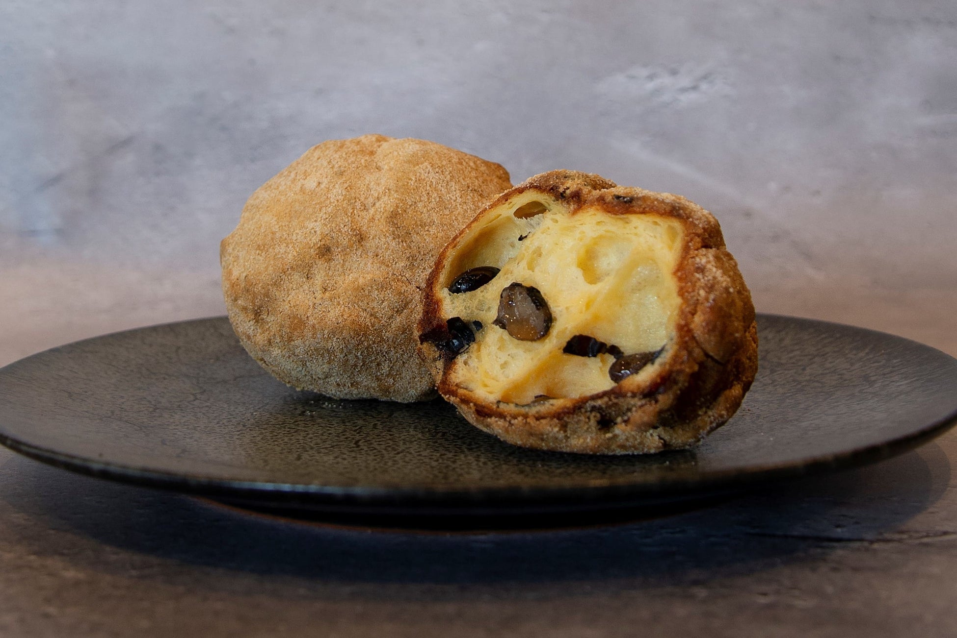 旨味たっぷり甘口のキーマカレーに柔らかくジューシーな焼豚がゴロッと入ったカレーパンです。