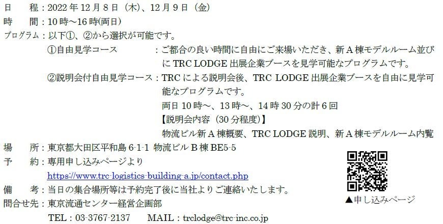 東京流通センター/『物流ビル新A 棟モデルルーム内覧会』と『物流ソリューション体験会』を12/8(木),(金)に大田区平和島で同時開催