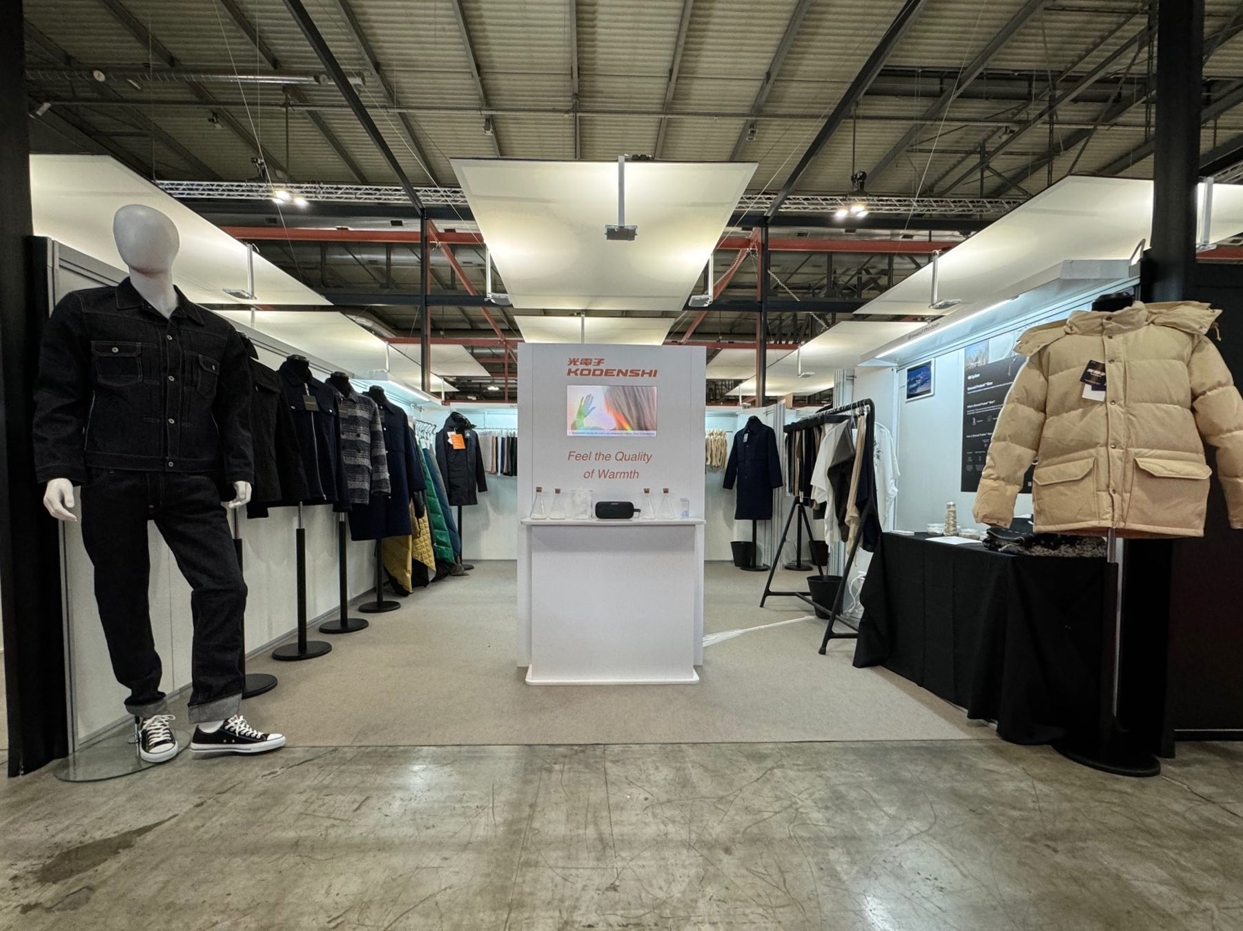 主な出展製品には、防寒素材「光電子®ダウン」および「光電子®Re:nsulation」、北陸産地のアウターシェル素材、環境配慮素材「Brewed Protein™」、「PlaX™︎」を使用したファブリック、高品質デニム、和歌山産地の技術を駆使した高品質なニットファブリックなど、バラエティ豊かな製品を取り揃えています。また、縫製会社の湯峰ソーイング株式会社とのタイアップにより、素材活用のイマジネーションを広げる製品サンプルも多数展示し、独自の素材開発から製品生産までをワンストップで提案します。