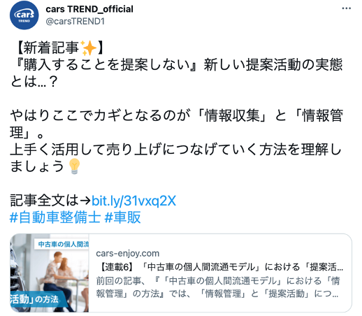 「cars TREND」の紹介を中心に発信する自動車業界に従事する方に向けた