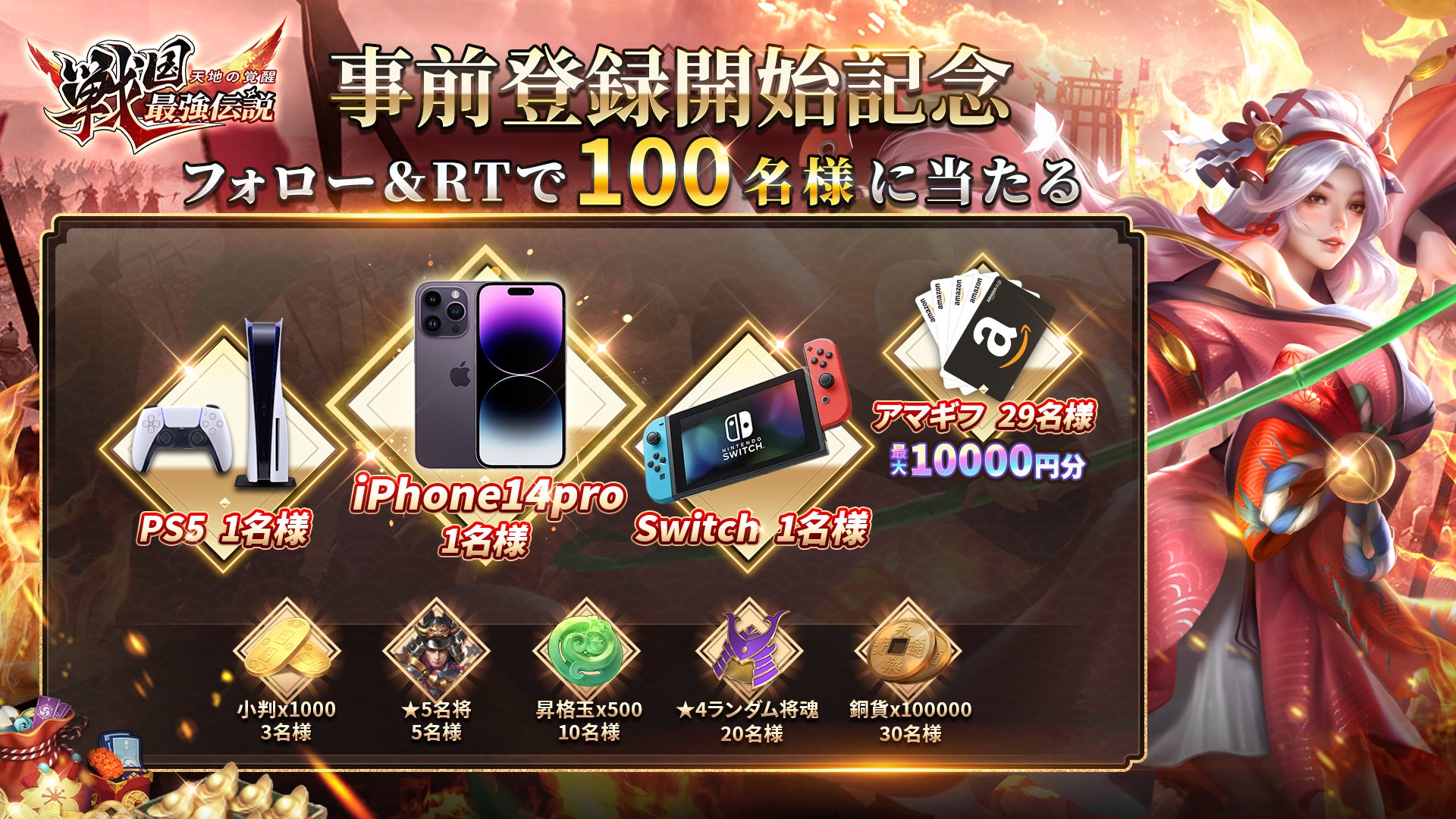 - 超豪華事前登録記念キャンペーン絶賛開催中!合計100名様に当たる!