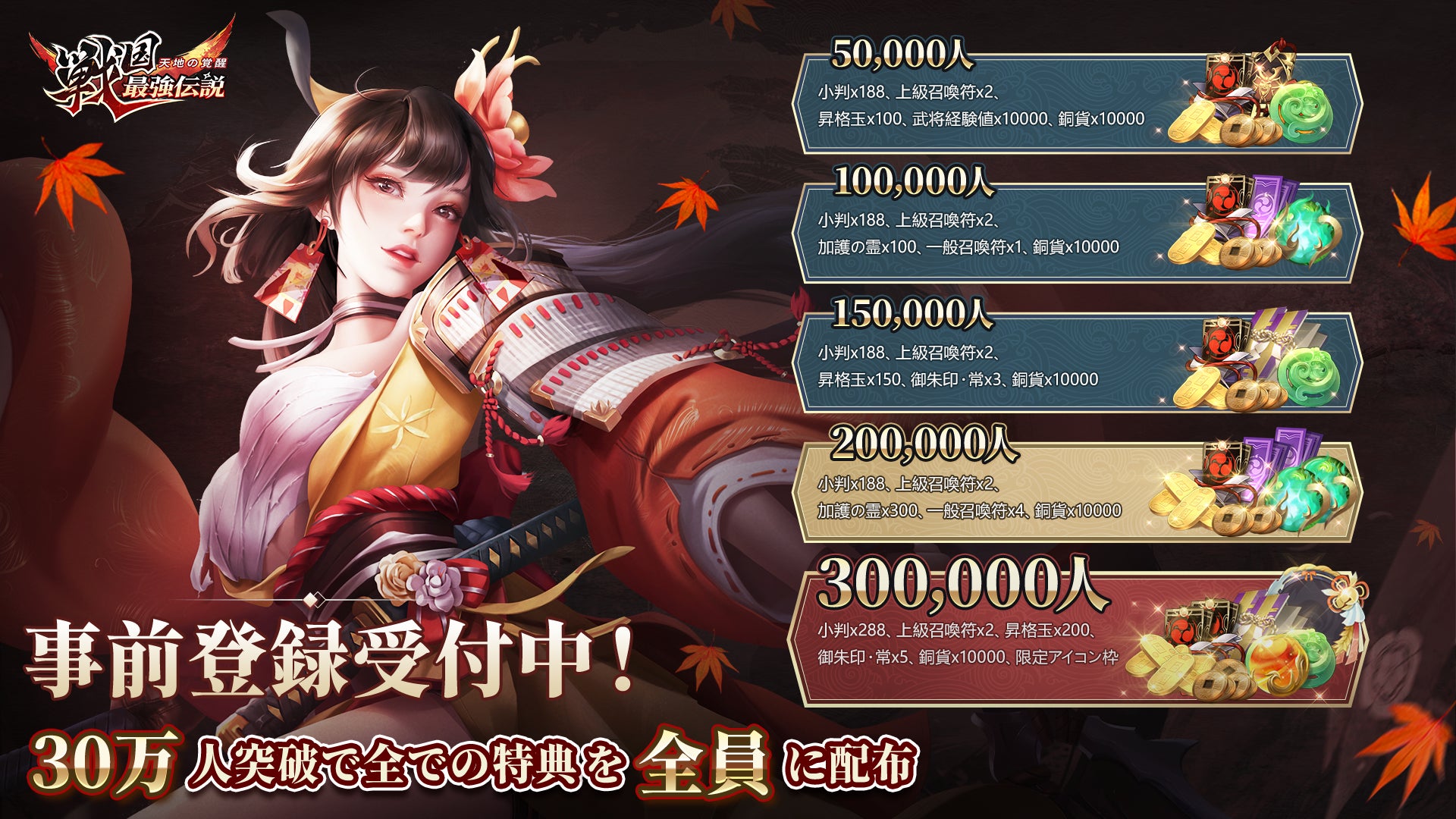 オートバトル戦国RPG『戦国最強伝説~天地の覚醒~』本日4/14(金)より事前登録開始!予約して300連無料ガチャをゲット!クローズドβテストも同時にスタート。