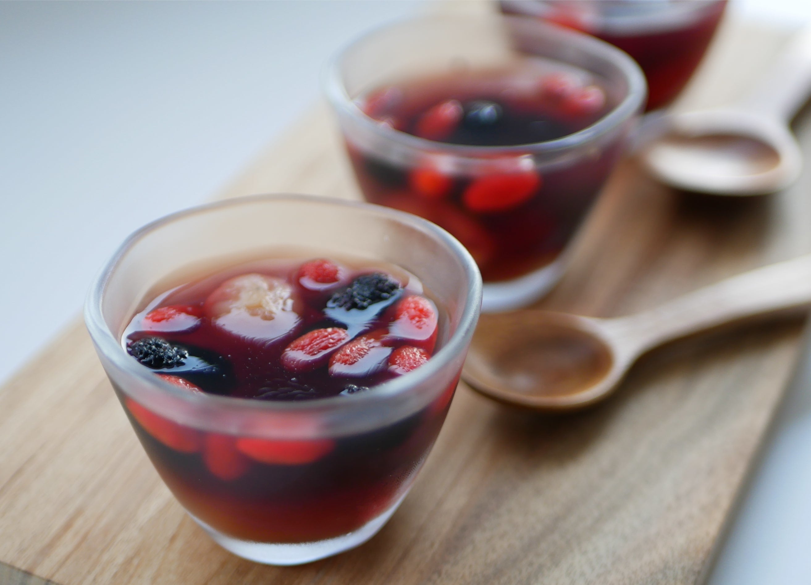 澄潤妃で作る薬膳ゼリーは、お砂糖を使わなくても果実由来の天然の甘みを楽しむことができます。