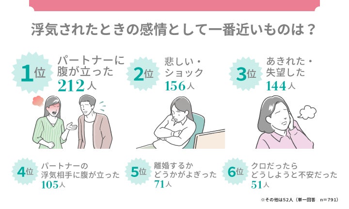 浮気をされたときの感情は「パートナーに腹が立った」が圧倒的に1位