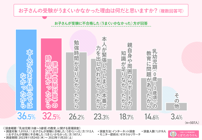では、お子さんが小中学校の受験に不合格だった親御さんは、どのような理由があったと考えているのでしょうか?