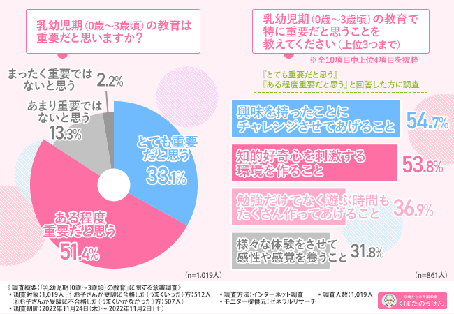 非常に多くの親御さんが、乳幼児期の教育を重要視しているといえそうです。