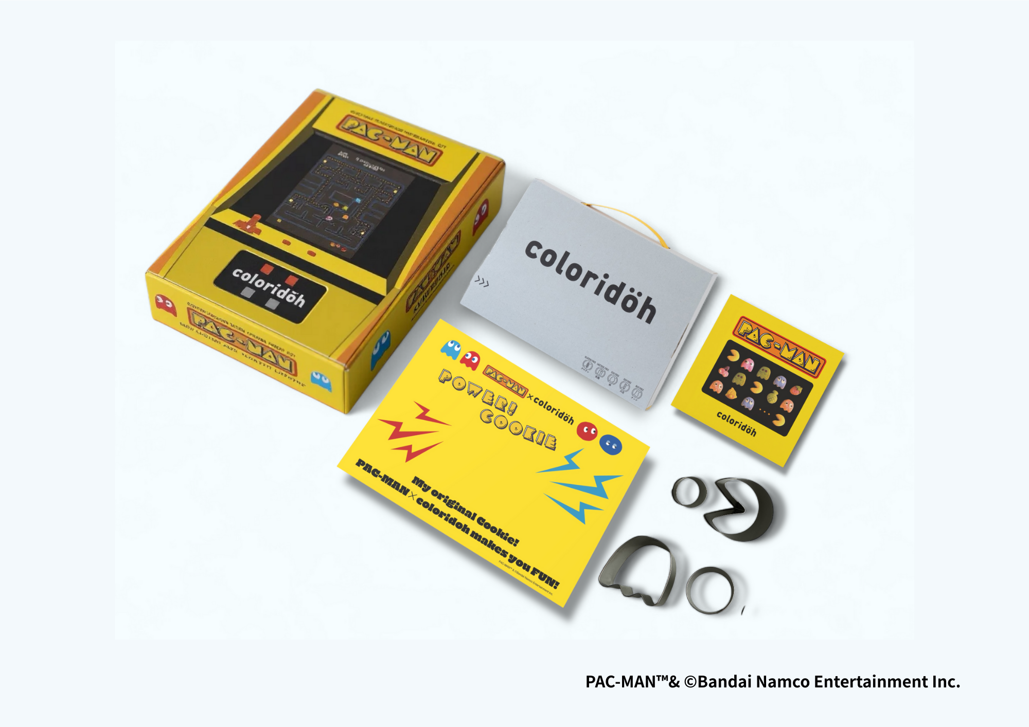6,000円:coloridoh×『パックマン』コラボキット(生地+4種クッキー型抜き+プレイシート+説明書+オリジナルステッカー、送料込。クラウドファンディング限定)