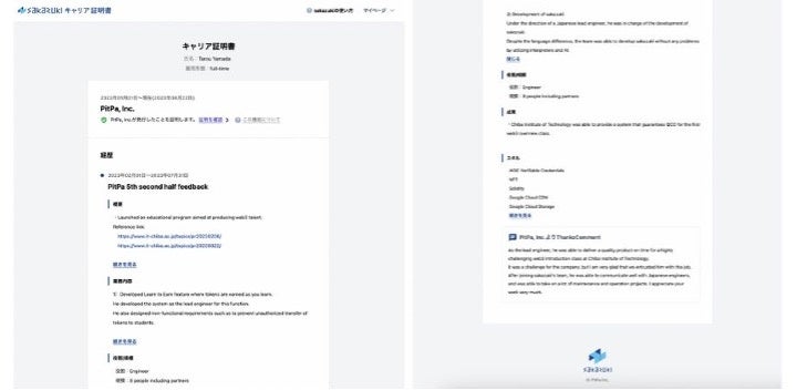 -従業員の部署や職務、活動内容、実績などが記載されたデジタル証明書