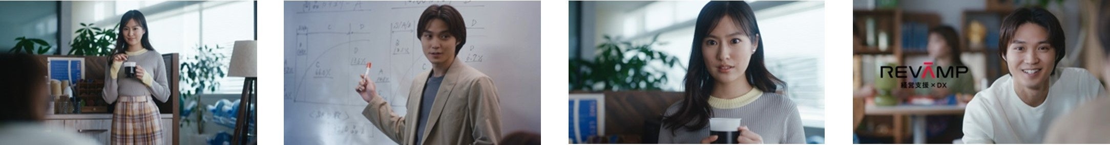 「複数のスキルを併せ持ち、様々な業界から集まっている」という当社の社員像に近い、磯村勇斗さん、恒松祐里さんを起用し、当社の“多様性のある若手社員が切磋琢磨しながら共に成長できる企業である様子”を全4篇のストーリーで表現しました。演出を担当するのは、映画、CM、ドラマ、MVと幅広い映像分野で監督を務める松本壮史さんで、“リアルなリヴァンプ”の表現にこだわり抜きました。