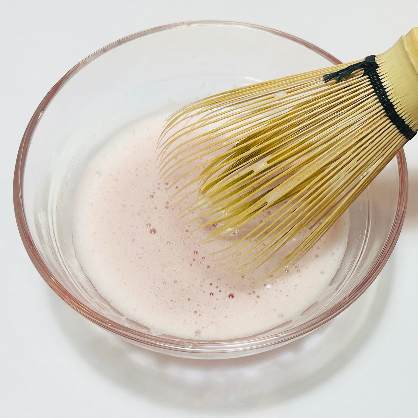 そのままお湯に溶かすだけで飲むこともできますし、牛乳や豆乳などをブレンドしてラテとして楽しんだり、ソーダ割りにしたりなど、お好みに応じてさまざまな形でお楽しみいただけますが、抹茶ならではのクリーミーな口当たりと桜のかぐわしい香りを直に強く感じていただける、茶せんで抹茶を点てる方法を一番にお勧めしています。