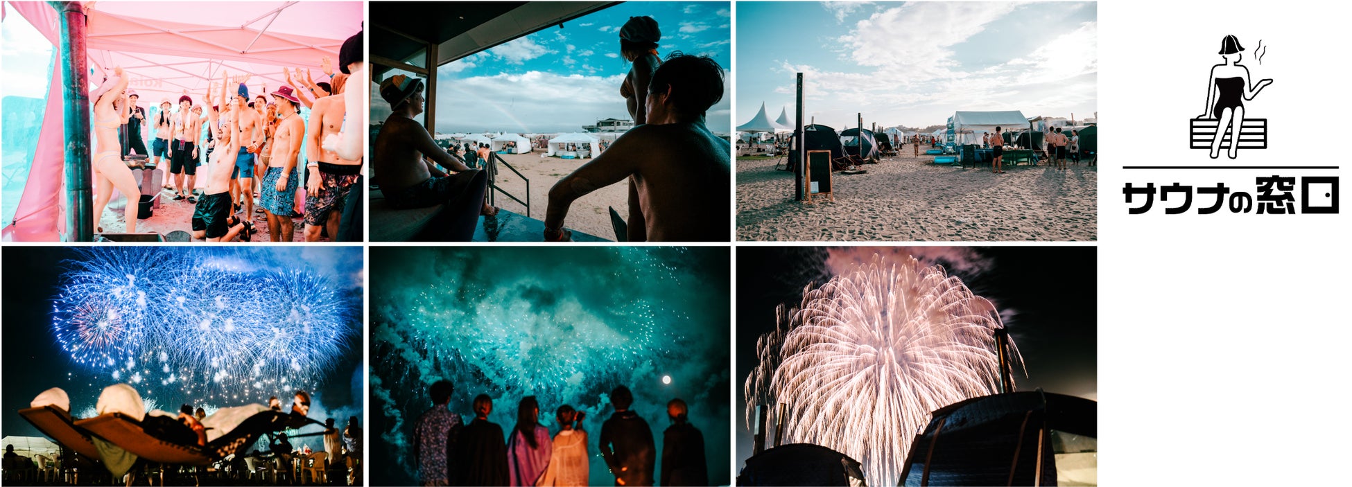 「花火×サウナ」でかつてない『ととのい体験』を”をコンセプトに、バンサウナ、テントサウナ、バレルサウナ、チラー付き水風呂を1箇所に集めました。今年は「サウナの窓口」プロデュースのもとサウナエリアを運用します。