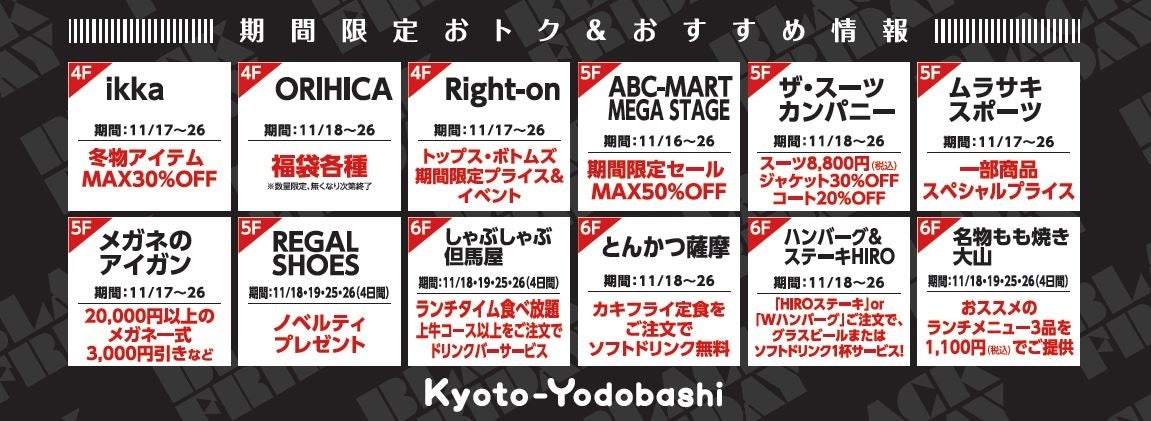 京都駅前にある、ヨドバシカメラとファッション、雑貨、飲食店などの専門店が一体となった「京都ヨドバシ」は2023年11月16日(木)~11月26日(日)の間、おトクにショッピング・お食事が楽しめるブラックフライデーを開催します。