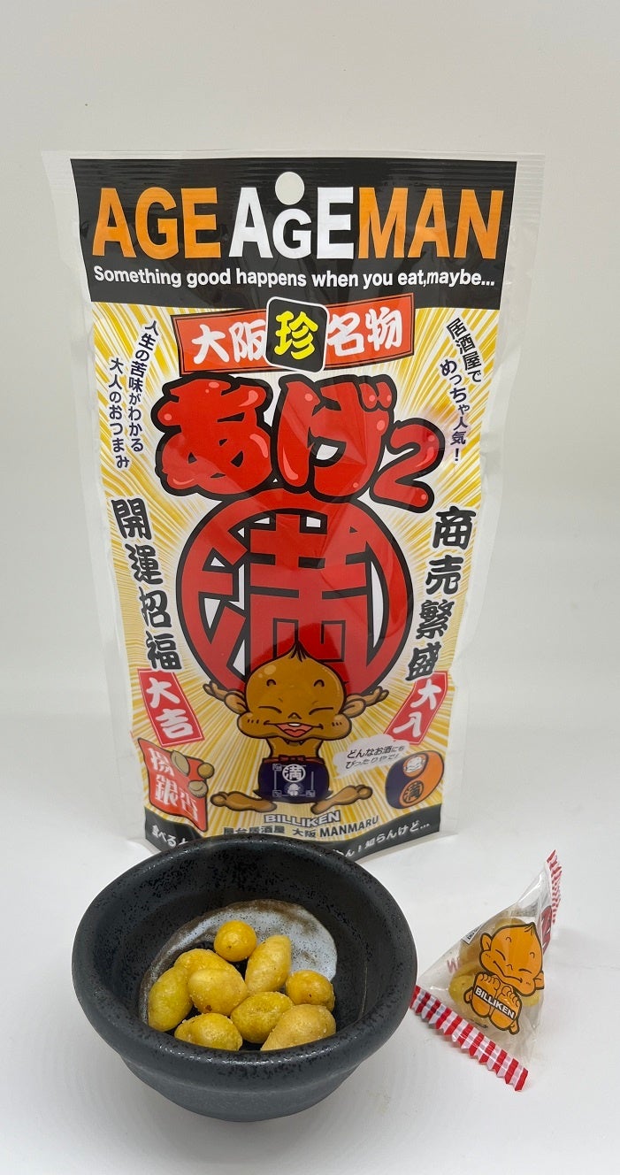 総合居酒屋「屋台居酒屋 大阪満マル」や「すしや コトブキツカサ」を展開する株式会社イートファクトリーホールディングス(本社:大阪府大阪市北区 代表取締役:山口功)は、同社初のオリジナル商品であるおつまみスナック「あげ2満(あげあげまん)」〈揚げぎんなん・枝豆〉を2/1(木)より一部対象店舗※にて発売します。